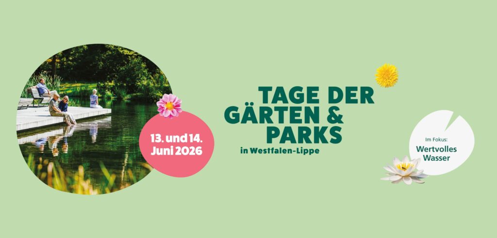 Neu ! Tag der Gärten & Parks in Westfalen – Lippe am 13 & 14 Juni 2026. Eintritt pro Person: 3,00 € !